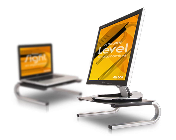 Allsop Redmond Monitor Stand, holds 40 lbs with keyboard storage space - Black (29248)