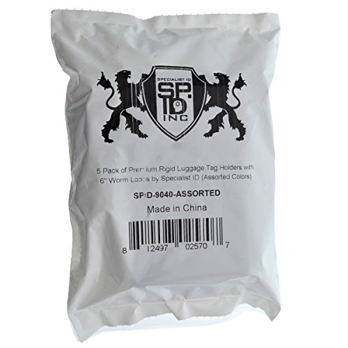 -. Brand : Specialist ID -. Feature : Hard Plastic Heavy Duty Lage Tags with Worm Loops Included / Get a Matching Set to Quickly Identify the Lage of Your Whole Group / Slip in a Business Card, or Fill Out the Included Info Card. Insert Size Same as a Credit Card / Loop Inserts Through the Top Slot to Lock In Your Info / Vibrant Colors are Easy to See From a Distance -. Model : SPID-9040 -. PackageQuantity : 5 -. ProductGroup : Apparel -. ProductTypeName : LAGE -. Title : 5 Pack of Premium Rigid Lage Tag Holders with 6" Worm Loops by Specialist ID