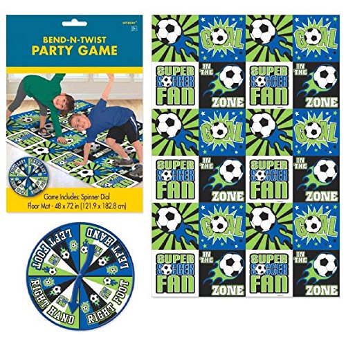-. Binding : Toy -. Brand : Amscan -. Color : Green/Blue -. EAN : 0013051465056 -. Feature : Colorful floor mat is decorated with soccer images and phrases like "Goal!" and "In the Zone." / Game mat measures 48" x 72" / Game kit contains: 1 Mat 1 Spinner / Perfect for game day or a soccer-themed party. -. IsAdultProduct : 0 -. Label : Amscan - Toys -. Manufacturer : Amscan - Toys -. Model : 270073 -. MPN : 270073 -. PackageQuantity : 1 -. PartNumber : 270073 -. ProductGroup : Toy -. ProductTypeName : TOYS_AND_GAMES -. Publisher : Amscan - Toys -. Size : 9.2 x 6.2" -. Studio : Amscan - Toys -. Title : Soccer Goal Birthday Party Bend and Twist Game, Plastic, 48" x 72", Pack of 2 -. UPC : 013051465056 -. Warranty : No Warranty