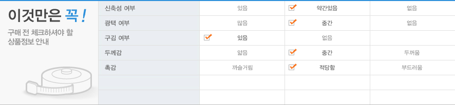 | ※ 모니터 해상도, 발기, 컴퓨터 사양 , 이미지에 따라 약간의 색상 차이가 있을 수 있습니다. ※ 품질경영 촉진법에 의한 품질 표시를 꼭 참조하시어 세탁하십시오 |