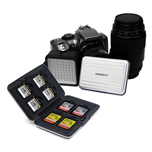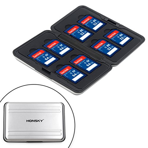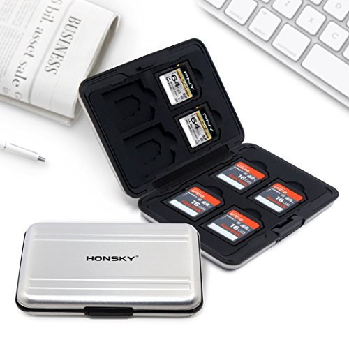 Honsky Aluminum Water Resistant UHS-I SD Micro SD SDHC SDXC TF SecureDigital Memory Card Carrying Case Holder Organizer Box Keeper for Computer Camera Media Storage Organization, Silver
