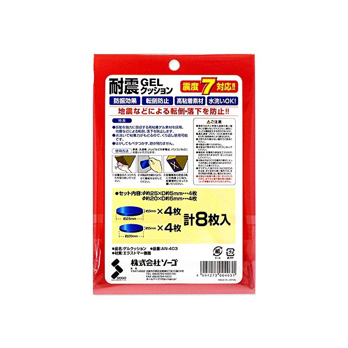원본상품명: ソ?ゴ 耐震 GELクッション Sサイズ 丸型 8枚入(25mmX4枚、20mmX4枚)