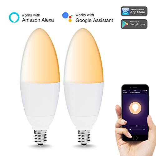 LOHAS Smart LED Bulb, Dimmable E12 Base Wi-Fi Candelabra LED, 40W Equivalent (5W) Light Bulb 2000K-6500K, Smartphone Controlled, Compatible with Alexa and Google Assistant, No Hub Required (2 Pack)