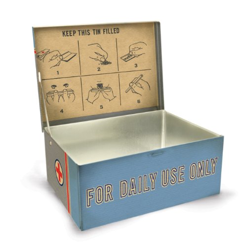 -. Binding : Kitchen -. Brand : Blue Q -. Color : Blue -. Feature : BLUEQ approved Medical Marijuana Tin is the perfect container for your finest sticky icky icky. / Delicately decorated with vintage matchbook art. / 3"h x 7.25"w x 5.5"d -. Label : Blue Q -. Manufacturer : Blue Q -. ProductGroup : Home -. ProductTypeName : HOME -. Publisher : Blue Q -. Studio : Blue Q -. Title : Blue Q Tin Box, Cigar Box