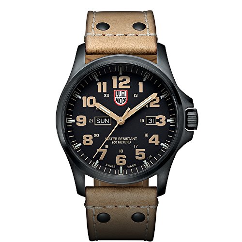 -. Title : Luminox Atacama Field Day Black Carbon Fiber Dial Brown Leather Mens Watch 1925