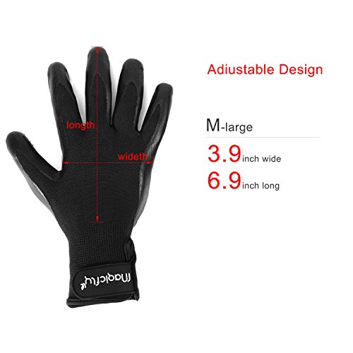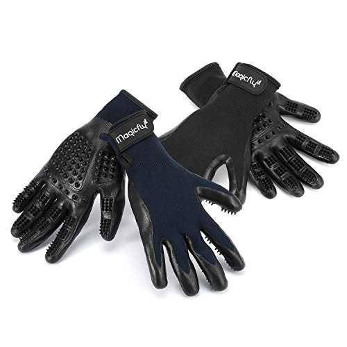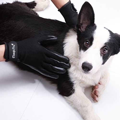 Studio : Magicfly Publisher : Magicfly Binding : Misc. Product Description "Magicfly Pet Deshedding Glove Hair Remover Tool, Gentle Pet Massager Brush with Enhanced Five Finger Design, Perfect Pet Products for Dog Cat with Long Short Fur BENEFIT FEATURES OF MAGICFLY PET GROOMING GLOVE, Enjoy the hair removal with our multifunctional pet grooming gloves Enhanced Five Finger Gloves Design - Gently clean sensitive hard-to-reach places, like face, tail or legs 1. Adjustable Wrist Strap for a comfortable fit.(medium and large size for choosing) 2. Lightweight and breathable design, comfort not just for your pets, but also you. 3. Use them wet or dry - Palm coating will help to keep your hands and fingernails clean. 4. Machine Washable (Easy to Clean) 5. Scrubbing nubs provide relaxing massage for your pets. Gentle Hair Remover, Regular brushing removes loose hair and mats from your pet's coat. 6. Perfect for your lovely dogs, cats, horse or other pets. Package Includes: Pet Deshedding Glove x 2 (1 left-hand and 1 right-hand) " 0