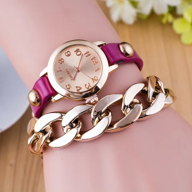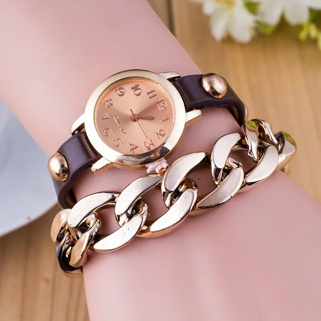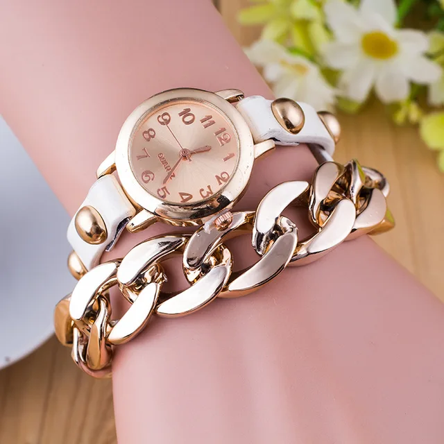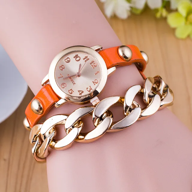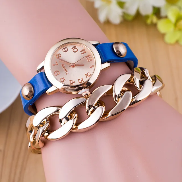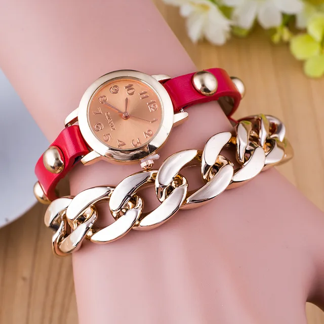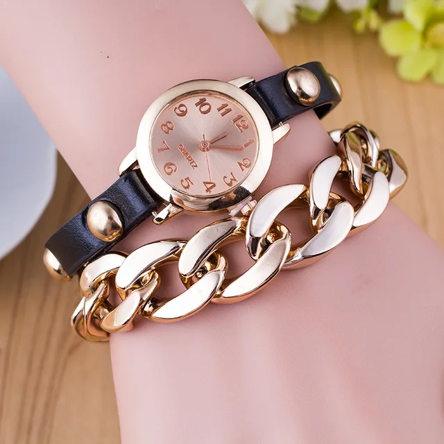 | [해외] 새로운 패션 여성 팔찌 시계 골드 석영 손목 시계 럭셔리 캐주얼 여성 드레스 가죽 체인 시계 Relogio Feminino 선물 |