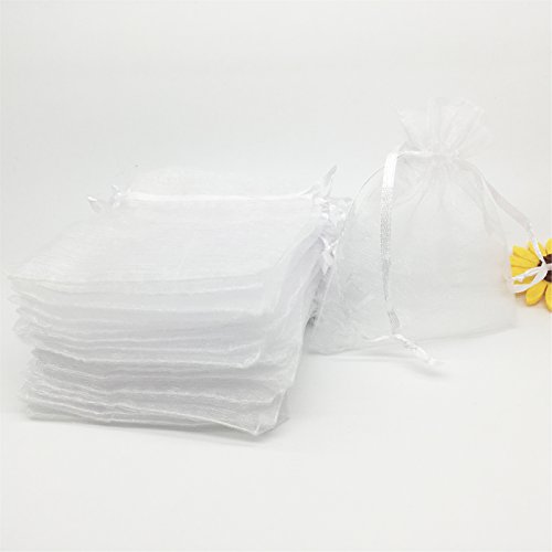 YIJUE 100pcs 4x5 Inches Drawstrings Organza Gift Candy Bags Wedding Favors Bags (White)