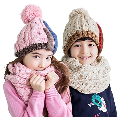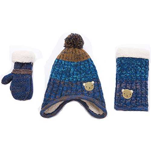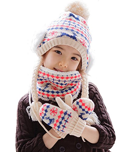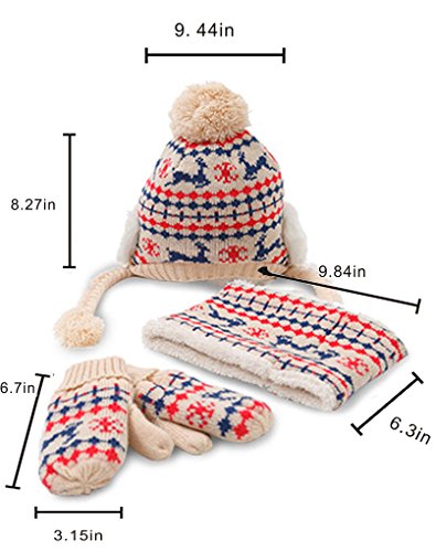 YooHome Kids Cute Winter Cap, Scarf, Gloves Three-Piece Set great for Christmas gifts