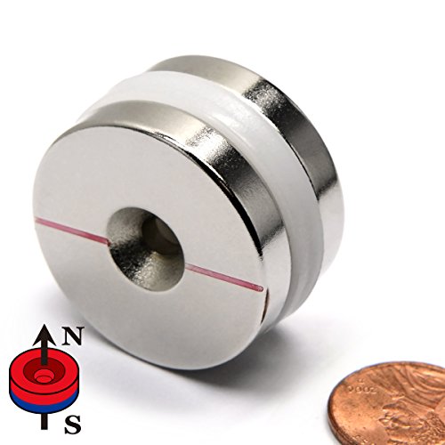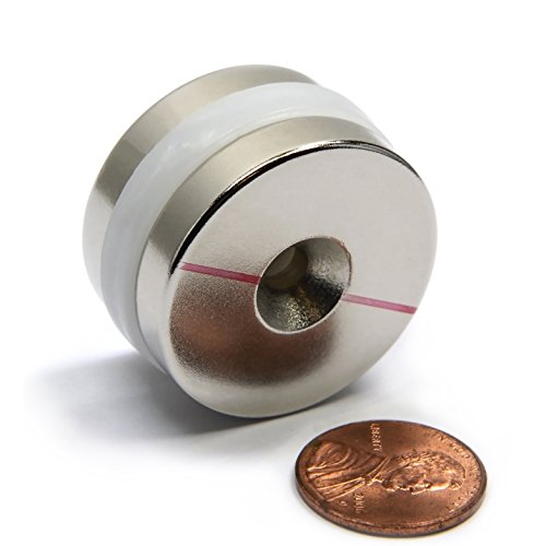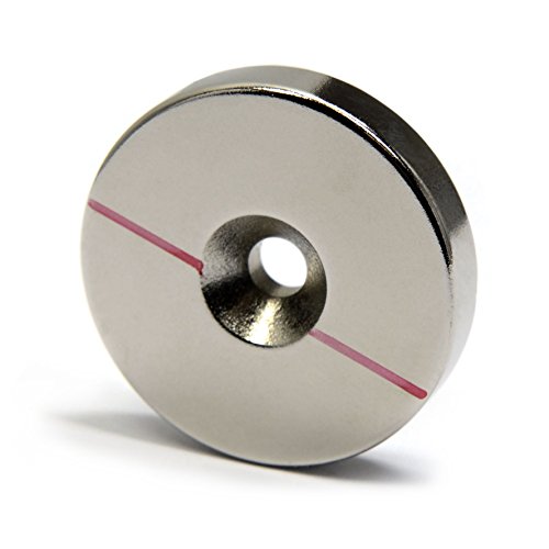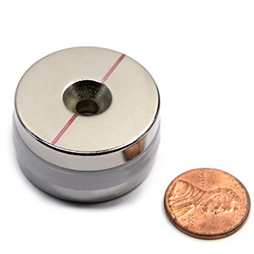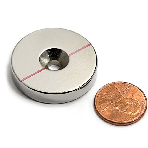 2 Pieces of CMS Magnetics Neodymium Magnets Dia 1.26" x 1/4" Grade N52 w/ #10 Countersunk Hole on North Pole - 1.9 Times Stronger than 0.2" Thick Grade N35 Magnet