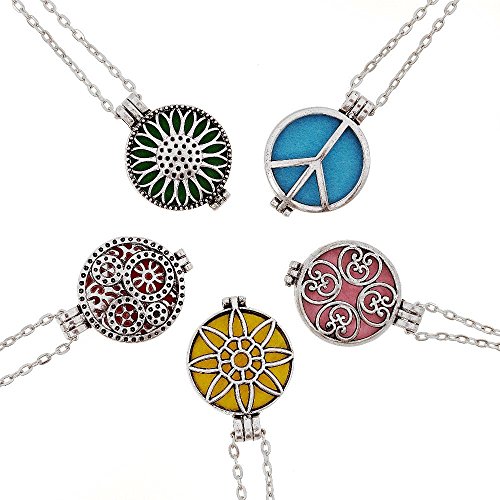 Essential Oils Aromatherapy Diffuser Locket Necklace Pendant Set 10 Color Washable Refill Cotton Pads