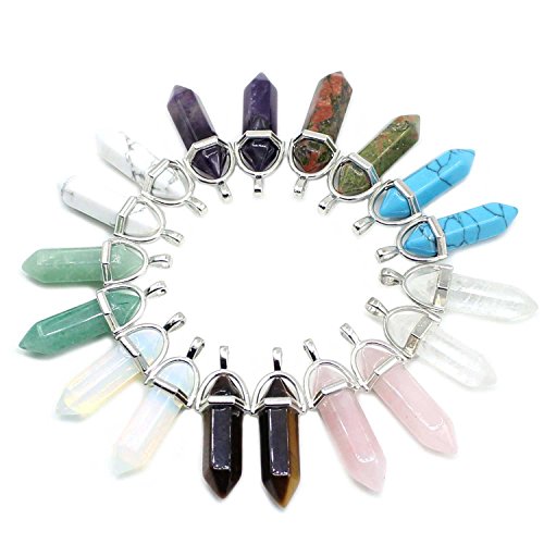 Wholesale 18 PCS Assorted Genuine Natural Quartz Stone Healing Point Reiki Chakra Pendants Bulk for Jewelry Making
