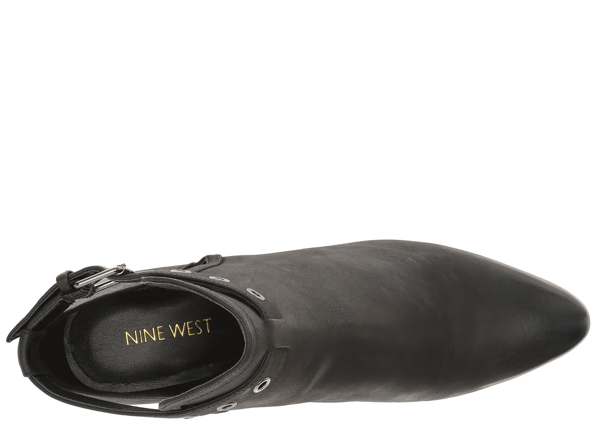 | Product Information SKU: #8852338Stay Loyal to your bold style in these modern Nine West? booties.Leather or suede upper.Eyelet detailed ankle strap with buckle closure.Soft, pointed toe.Side cut-out accents.Man-made lining.Padded footbed.Stacked heel.Man-made sole.Imported.Product measurements were taken using size 8, width M. Please note that measurements may vary by size.Weight of footwear is based on a single item, not a pair.Measurements: Heel Height: 1 3?4 in Weight: 12 oz Shaft: 5 1?2 in |