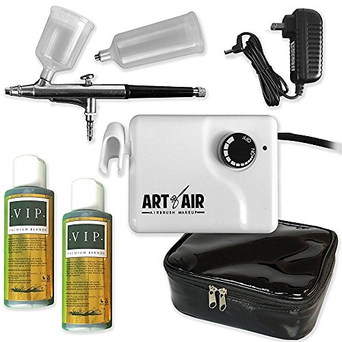 -. Feature : Art of Air Sunless Tanning Airbrush Compressor System / 2 Bottles VIP Premium Tanning Solution for Light and Medium Skin Tone (4oz each) / Deluxe Black Airbrush System Carrying Bag / Complete Airbrush System, nothing else needed to get started! for Beginner and Professional use.