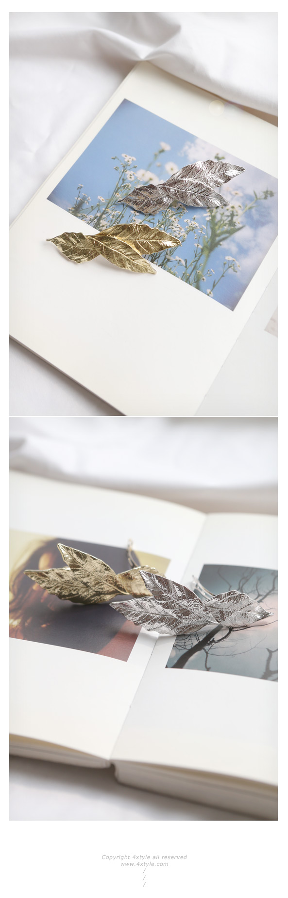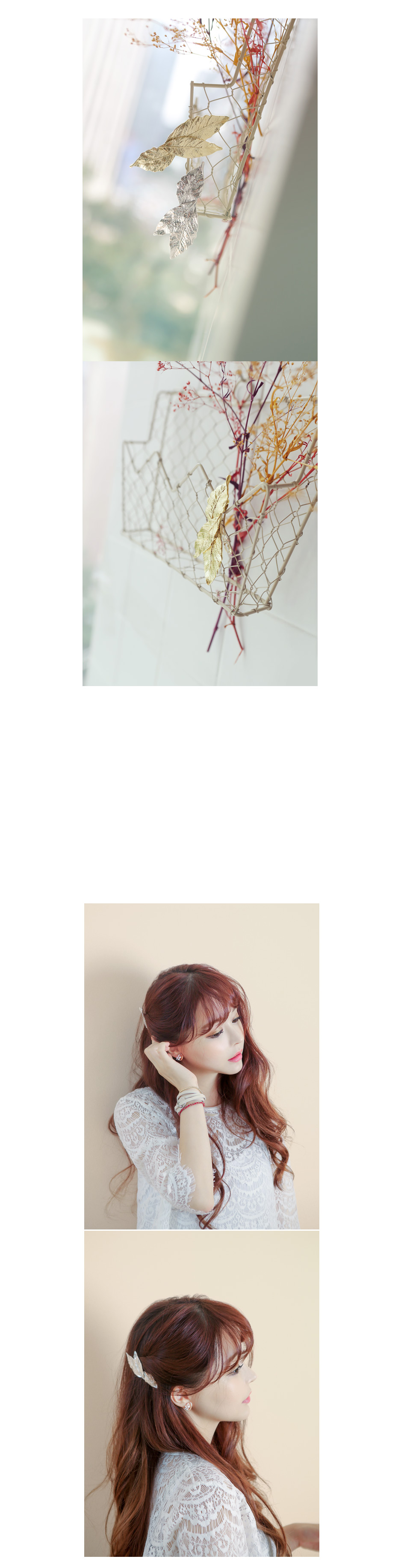 작은 잎사귀를 모티브로 디테일이 섬세하게 디자인한 엔틱하고 빈티지한 감성의 마커스 헤어핀 입니다.