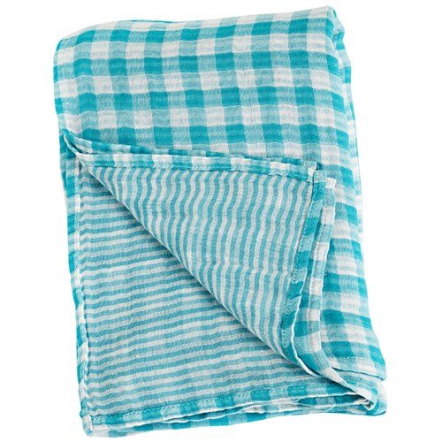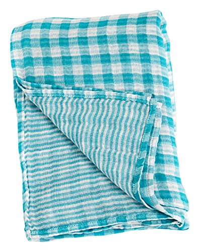 Lulujo Baby Reversible Muslin Cotton Swaddles Blanket, Aqua, 47" x 47"