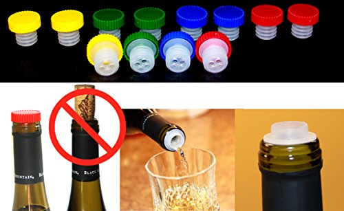 -. Feature : 12 pc wine pourer/stopper/saver/aerator! / Pours slowly and aerates wine - stopper cap saves leftover wine / Pack includes 3 Red, 3 Blue, 3 Yellow and 3 Green / Ideal for parties, Wine tasting events, and wineries - Makes a GREAT GIFT for wine enthusiasts / Washable, reusable. You will love these little genius wine pourers/ stoppers
