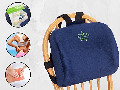 -. Title : Smart Lumbar Support Back Cushion Pillow for Lower Back Pain Relief by Liliyo, 3-Strap System (Blue)