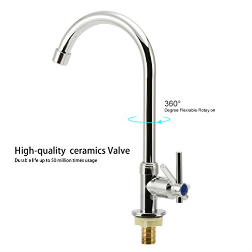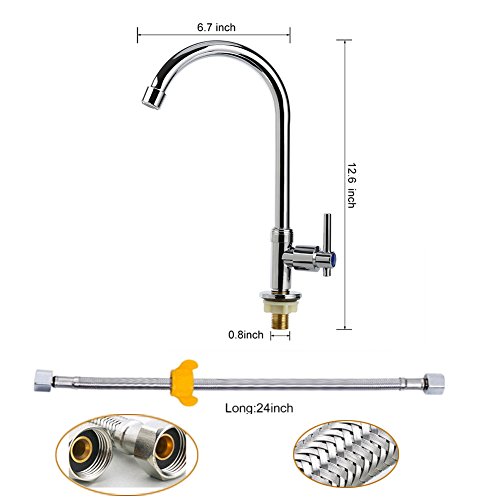 Easy Install Stainless Steel Bathroom Faucet Single Handle Single Hole High Arc Cold Water Sink Faucet for Bathroom,Outdoor Garden and Bar.(Free Cold Water Supply Lines)