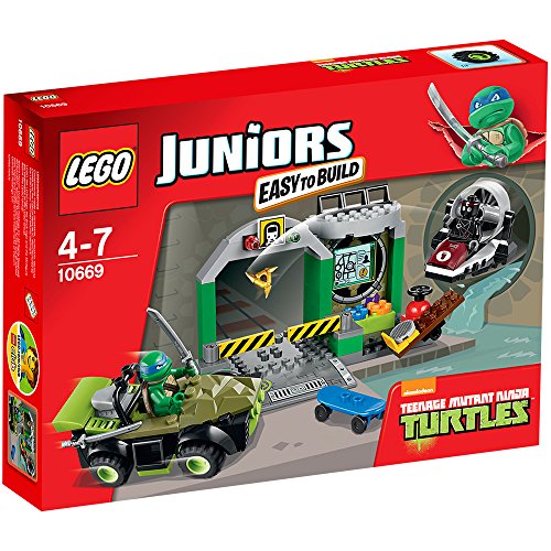 -. Binding : Spielzeug -. Brand : L.E.G.O -. EAN : 5702015125352 -. Feature : Enthält 2 Minifiguren: Leo mit seinen Schwertern und einen Foot-Ninja / Enthält das Turtles Versteck, Turtles-Fahrzeug, Foot-Ninja-Fahrzeug und Leos Skateboard / Das Turtles Versteck ist mit einer umklappbaren Werkzeugleiste, einem Abschussgerät und einem aufgedruckten Computer-Bildschirm ausgestattet / SP.R.Inge in das einfach zu bauende Fahrzeug und fange den Foot-Ninja ab / Mit dem Skateboard kannst du über die Rails gleiten -. IsAdultProduct : 0 -. IsAutographed : 0 -. IsMemorabilia : 0 -. Label : L.E.G.O -. Manufacturer : L.E.G.O -. Model : 10669 -. MPN : 10669 -. PackageQuantity : 1 -. PartNumber : 10669 -. ProductGroup : Toy -. ProductTypeName : TOYS_AND_GAMES -. Publisher : L.E.G.O -. ReleaseDate : 2014-06-28 -. Studio : L.E.G.O -. Title : L.E.G.O Juniors 10669 - Turtle Versteck -. Warranty : 2 Jahre