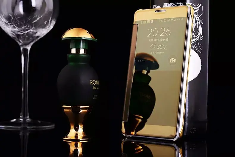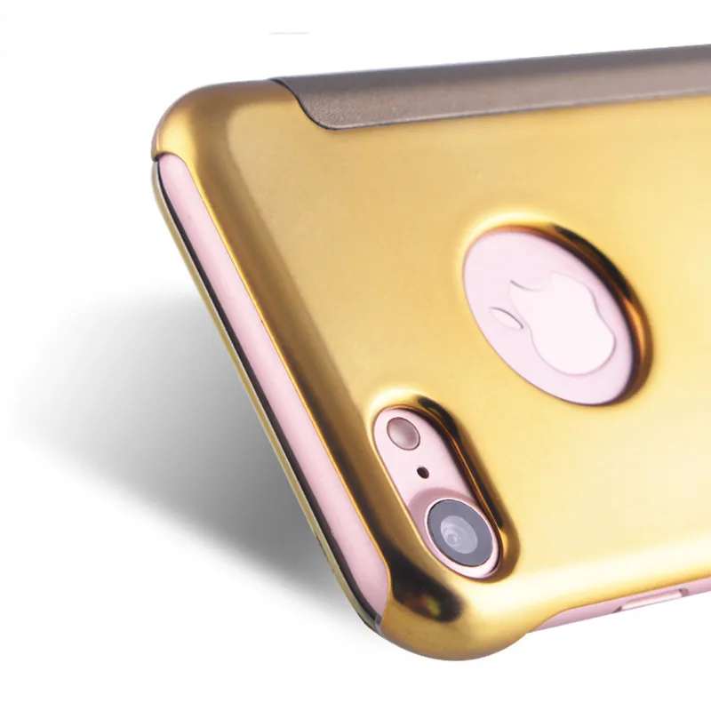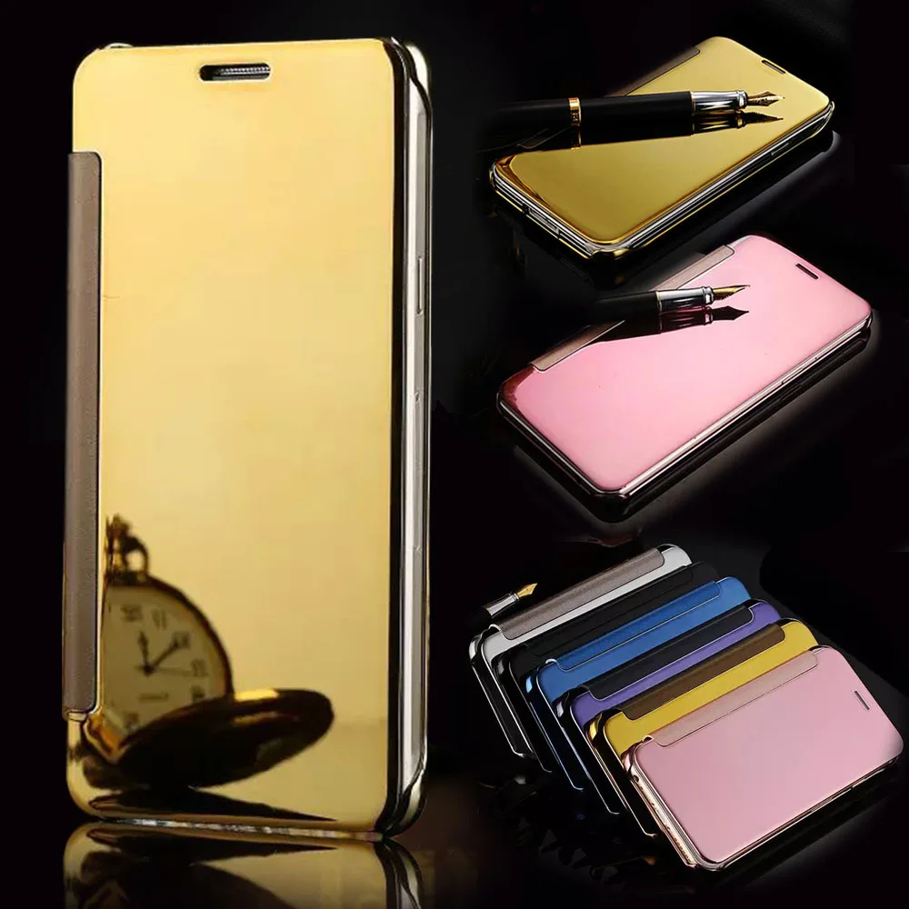 Features:Luxury Leather + Hard PC Flip Stand View Mirror Phone Case