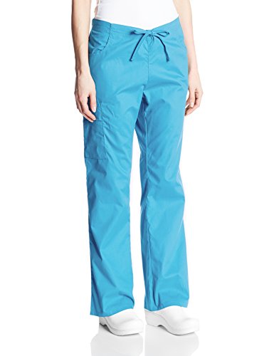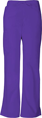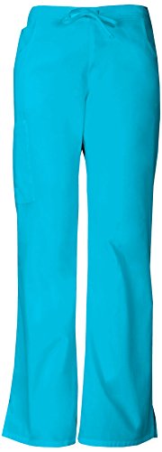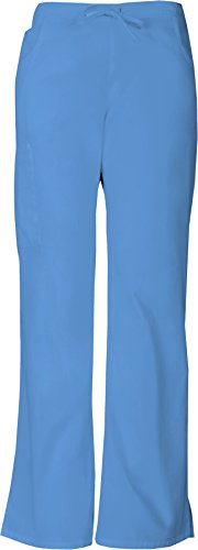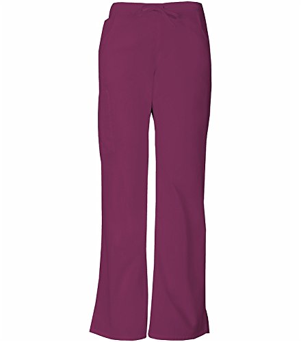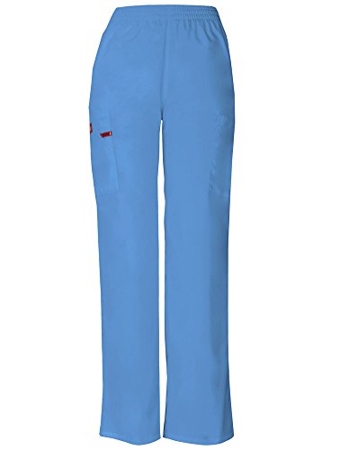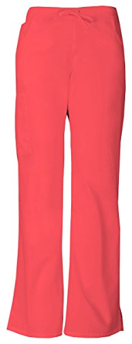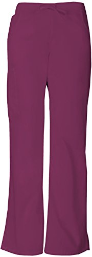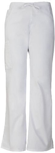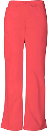 A modern classic fit, mid-rise, moderate flare leg pant features an adjustable drawstring with elastic at the back waist and dickies logo twill tape on the inside back waistband. Also featured are patch pockets, a back pocket, cargo pockets with a stretch red knit interior pocket (white knit pocket on white) and side vents. Inseam-30 1/2 inchFeature