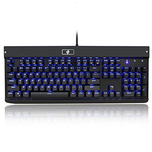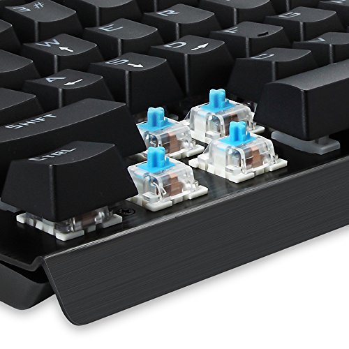 -. Feature : Custom mechanical switches for ultimate long-lasting performance / Blue LED adjustable lighting and double-shot injection molded keycaps for crystal clear backlighting / Aluminum and ABS construction and plate-mounted mechanical keys stand up to tough conditions / Custom mechanical switches designed for longevity, responsiveness, and durability. Mechanical keys with medium resistance, audible click sound, and tactile feedback / Full numeric keypad and splash-proof keys