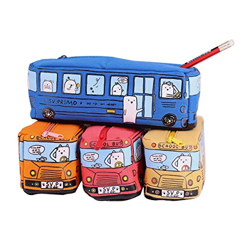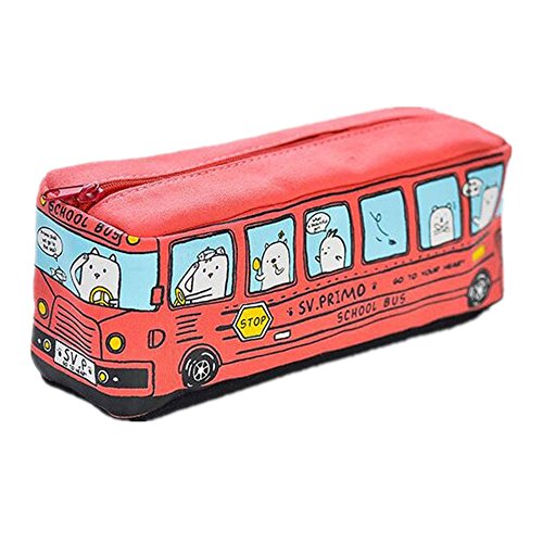 Molshine Cute Creative Bus Pencil Stationery Pouch Pen Case Pencil Case for School/Office(pencil not include) (RED)