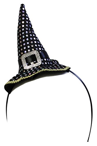 -. Binding : Apparel -. Brand : Jacobson Hat Company -. Color : Orange -. Department : womens -. EAN : 0763285224904 -. Feature : One size fits all (except very small children) / Lightweight and comfotable / Hat Measures Approximately 5 Inches Tall / Flexible headband allows secure and comfortable fit / Very Cute and unique! -. ProductGroup : Apparel -. ProductTypeName : ACCESSORY -. Size : One Size -. Title : Ladies Halloween Costume Accessory - Black Sparkle Witch Hat Headband -. UPC : 763285224904