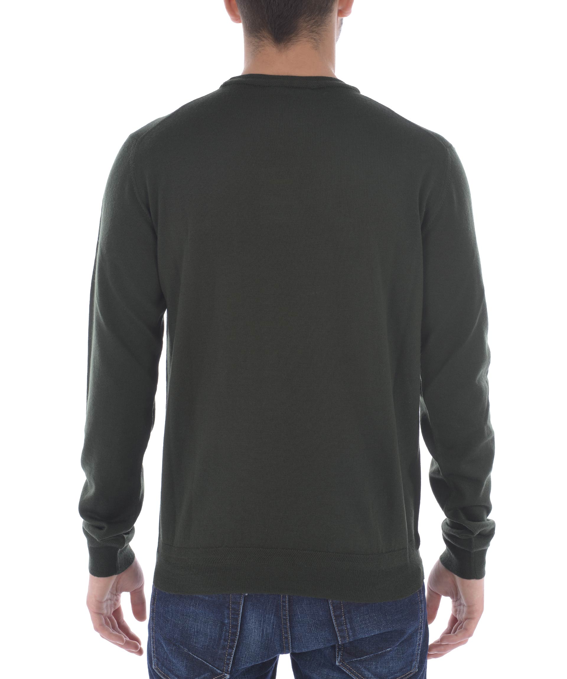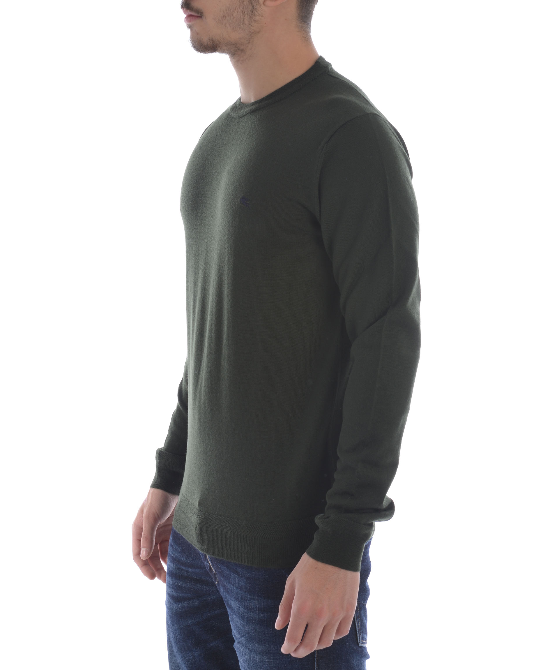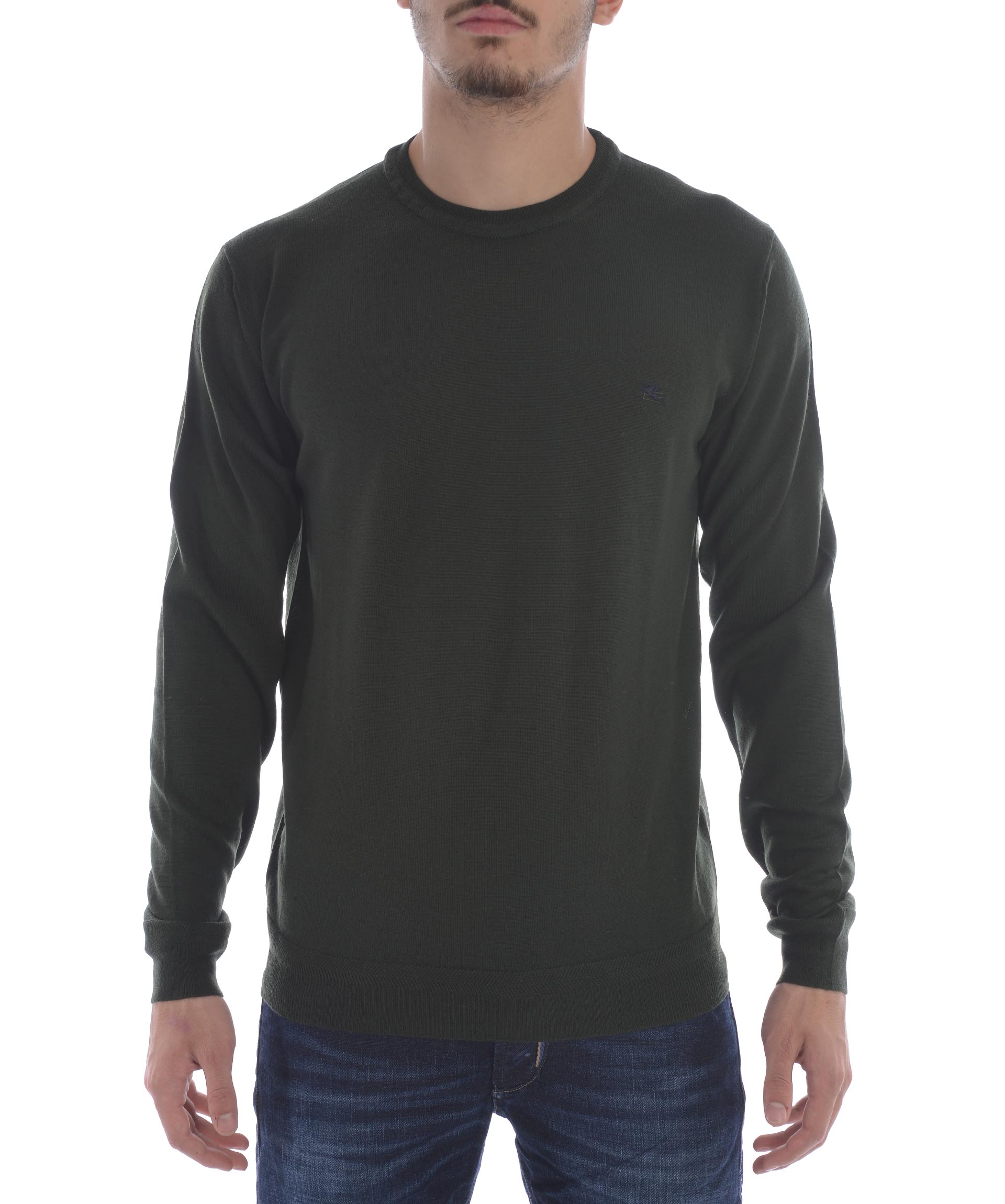 Maglia Etro in lana rasata Verde scuro. Girocollo a costine. Manica lunga. Polsi e fondo a costine. Logo frontale ricamato. Misura in foto M 100% lana