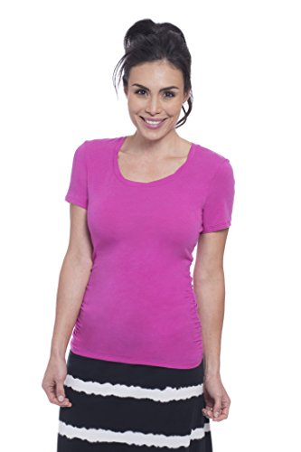 Our Junior tee takes an everyday basic to the next level! a scalloped neckline and side ruching make this the ultimate staple, either worn casually or dressed up for any occasion.Feature