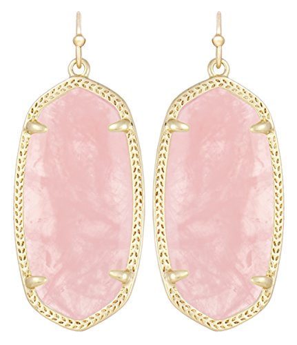KENDRA SCOTT SIGNATURE ELLE EARRINGS IN ROSE QUARTZ & 14K GOLD PLATED