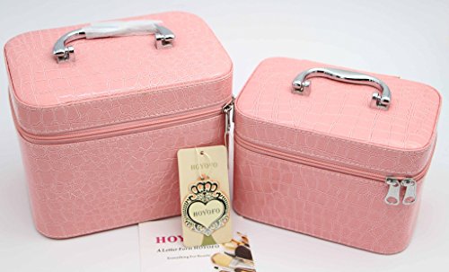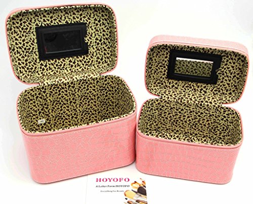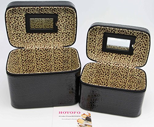 -. Title : HOYOFO 2-Piece Stone Texture Cosmetic Train Case Set Large Makeup Bags with Mirror