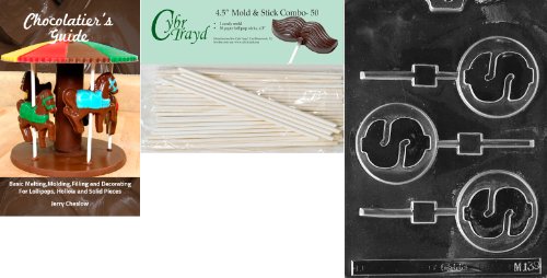 Cybrtrayd 'Dollar Sign Lolly' Miscellaneous Chocolate Candy Mold with 50 4.5-Inch Lollipop Sticks and Chocolatier's Guide