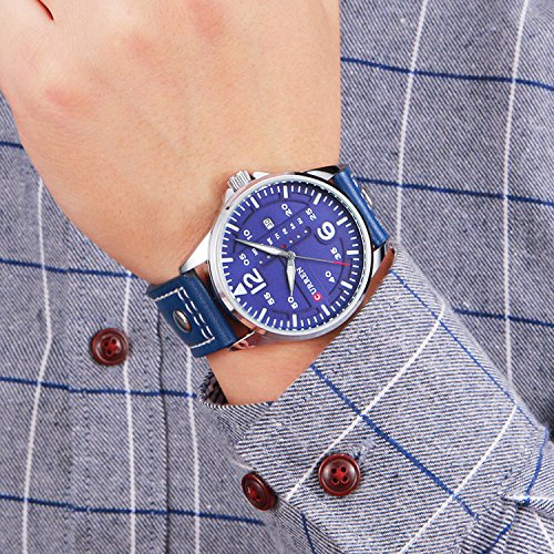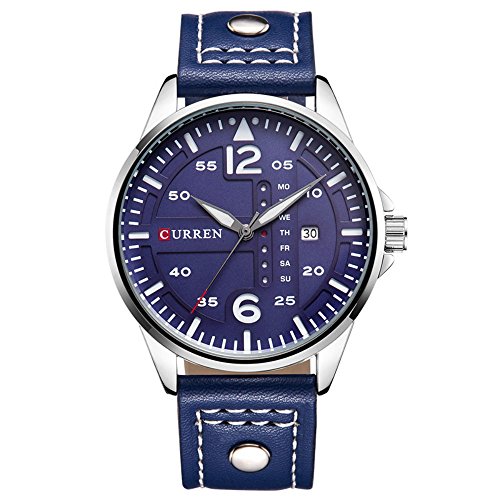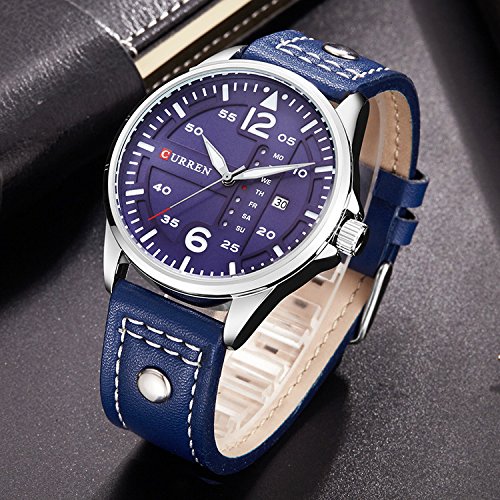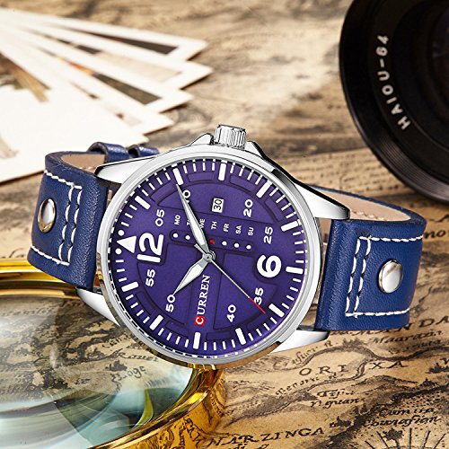-. Title : ユニークなニースファッションスポーツスタイルブルーメンズレザー防水腕時計デイデイトウォッチ日本クォーツムーブメント