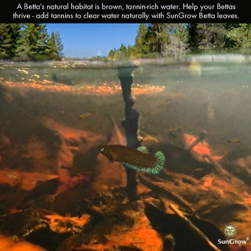 - ✔ BOOST IMMUNITY - SunGrow Betta Leaves will release beneficial tannins within 15 to 30 minutes. You'll notice your tank water browning. Tannins are known to contain healing properties. Remove the leaves only when they start to disintegrate. Because SunGrow Catappa Leaves are organic, you don't have to boil them down and risk destroying the beneficial nutrients.