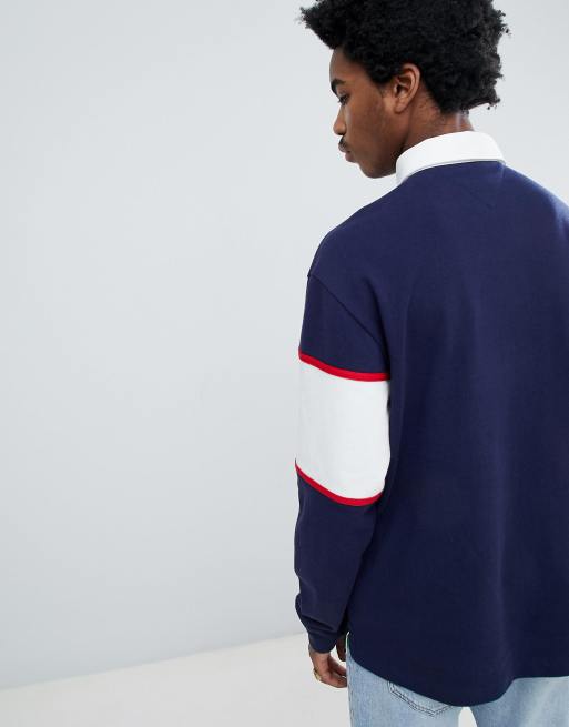 Tommy Jeans 90s Sailing Capsule Rugby Polo Chest Flag Logo in Navy