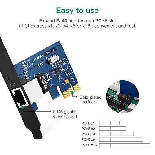 UGREEN Gigabit Ethernet PCI Express PCI-E Network Controller Card 10/100/1000Mbps RJ45 Lan Adapter Converter for Desktop PC