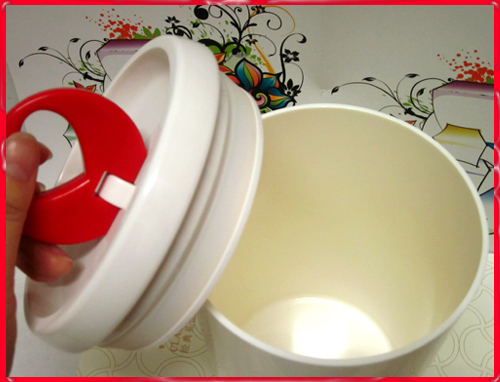 2) and lid -- down the lid, light press type handle lock in the cap,achieve the effect of sealing.