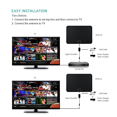 Advanced Performance -- Plug and play, environmentally friendly material. Paper-thin design,extremely slim and soft. Ease to hide it behind the TV; hang on the wall; lay flat on table; stick it high on window (highly recommended). It'll pull in hundreds of crystal clear digital & HD shows! It also can stand moisture weather or exposed to sunshine.