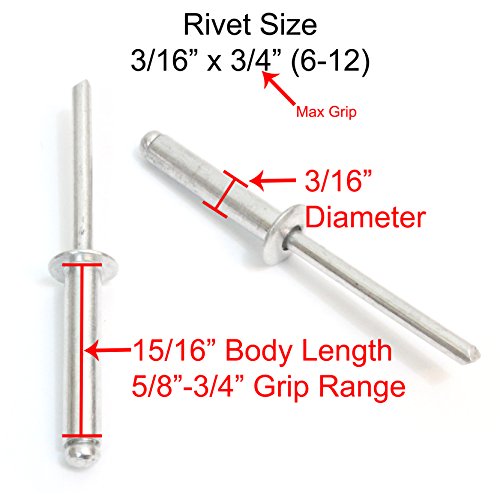 Rivets, Aluminum, 3/16" x 3/4" Inch, (6-12), Choose Size, Gap (.62 - .75)" (50 Pack), Blind Rivet By Bolt Dropper.