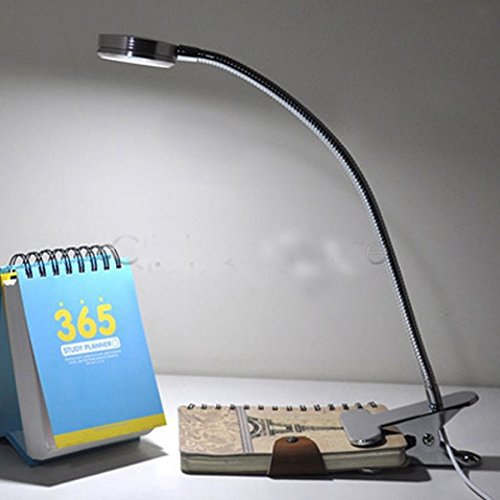 WAYCOM 3W Flexible Neck Clip-on LED Lamp Desk Lamp - Eye Care Reading Task Lamp (Silver) B00LX0NAV2