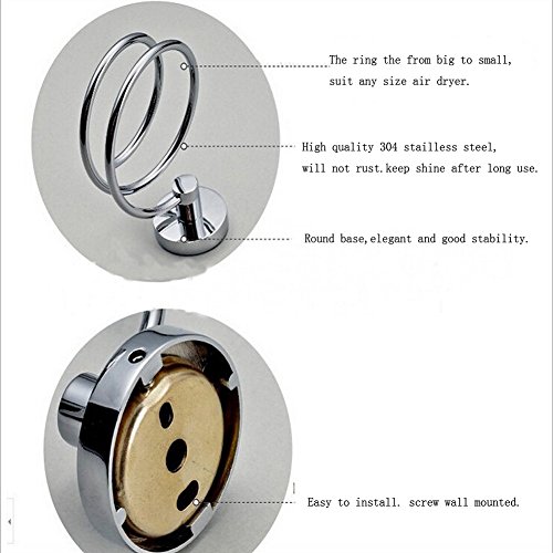 Basong Stainless Steel Bathroom Hair Dryer Holder Hair Care Tools Holder Wall Mount Chrome Finished