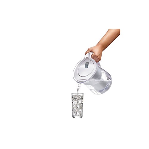 Brita® Mini Plus Pitcher helps you keep your family's drinking water healthier and cleaner. This 6 cup water filter pitcher fits perfectly in the refrigerator and offers a comfort grip handle and locking easy fill lid for easy pouring and refilling. It will also help you reduce waste by replacing as many as 300 plastic water bottles. Its advanced filter reduces harmful copper, mercury and cadmium contaminants commonly found in tap water, and is also easy to change out. Use your great-tasting filtered water for cooking, making baby formula, coffee, tea, juice and for refilling Brita® water bottles, and its electronic filter change indicator helps you know when its time to replace your filter to keep your water as tasty as can be. Brita® knows you are what you drink. Usage Directions: Your water filter pitcher can be ready to use in a few steps. Wash your hands before touching the filter, then flush it with cold water for 15 seconds. Insert the filter into the reservoir. Add cold tap water. The first three pitchers of filtered water may contain carbon dust. Use on plants or discard. Replace the water filter every 40 gallons or 2 months. Substances reduced may not be in all users water. Please read the Performance Data Sheet enclosed in the box for complete details. The Brita® Pitcher Filter is not intended to purify water. Do not use with water that is microbiologically unsafe or of unknown quality without adequate disinfection before or after the system. Individuals requiring water of special microbiological purity should follow the advice of their doctor or local health officials regarding the use and consumption of their tap water and Brita® filtered water.Feature