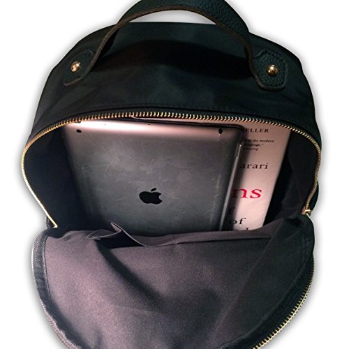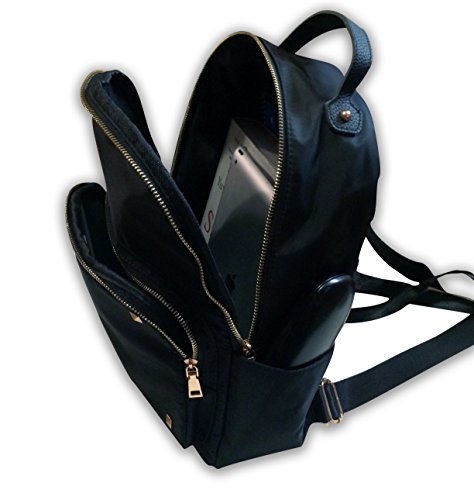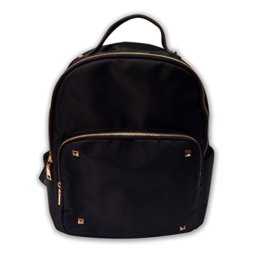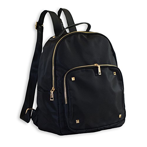 -. Feature : MODERN, SLIM, & STYLISH. Sleek nylon fabric adorned with gold studs and adjustable shoulder straps. Spacious interior with several pockets. / VERSATILE & CONVENIENT. Made for fashionable women and teens on-the-go. Wear as a mini backpack or purse. Useful as a school bag, diaper bag, or casual daypack. Bring it with you for travel or daily use around town. / COMFORTABLE TO WEAR. Lightweight and ultra soft with nice padding. Waterproof to keep your things dry in the rain. / PERFECT SIZE for a fashion backpack. 13" x 14" Not as bulky as a school-sized backpack, but plenty of room for your iPad, books, make-up, umbrella, water bottle, etc. / WELL-MADE & DURABLE. High quality for a fraction of the P.R.Ice of similar designer bags.100% satisfaction guaranteed.