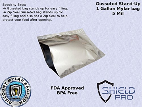 Stand Up Pouch 5 Mil 1-Gallon Gusseted Ziplock Zip Seal Mylar Bag for Long Term Food Storage (20) 10'x16"x4"