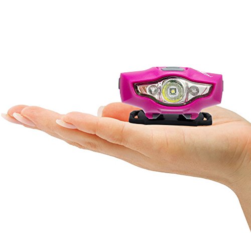 - Feature : Perfect head lamp for outdoors & indoors - running, hiking, cycling, fishing, hunting, DIY projects, plumbing, electrical work, auto repair, reading & power emergencies / Optimal combination of light weight and power output - 35 grams, 100 lumens - requires only 1 AA battery - CREE XP-E technology enables high performance with compact form factor / IPX 6 Rated - waterproof, dustproof, shock resistant - made of durable, non-toxic materials / Headlamps have 6 light modes - 4 white light levels, 2 red light levels, SOS - operated with single easily accessible button / Available in 3 colors - Midnight Blue, Neon Green, Hot Pink - with matching comfort-stretch headband