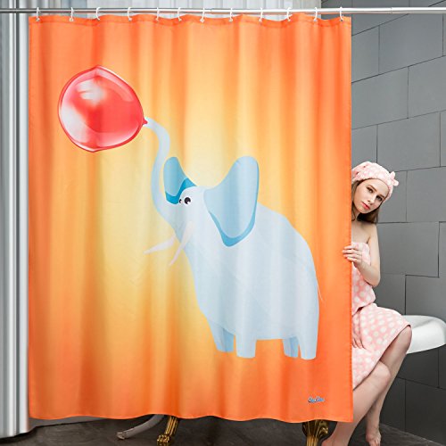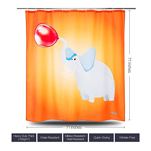 Animal Print Fabric Shower Curtain - EnaEzen Mildew Resistant Waterproof Funny Cartoon Elephant Shower Curtains Orange Polyester for Bathroom Thicked Material 71 x 71 inch Including 12 Curtain Hooks