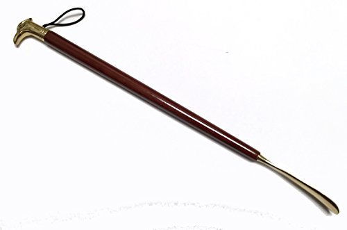 Product Description Saphir's Imperial Wood Brass Shoe Horn is 60cm or 23-5/8" long with a wooden handle and an exquisite brass-plated metal head in the form of either a horse, duck or eagle. 0