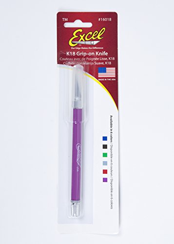 Soft Grip Hobby Knife, Excel Blades K18 with Safety Cap, American Made Light Duty Craft Knife (One Assorted Color)